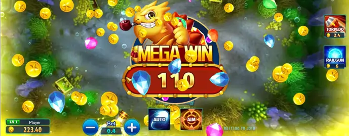 In Mega Fishing , you can select different cannon levels. Higher levels deal more damage but consume more credits.